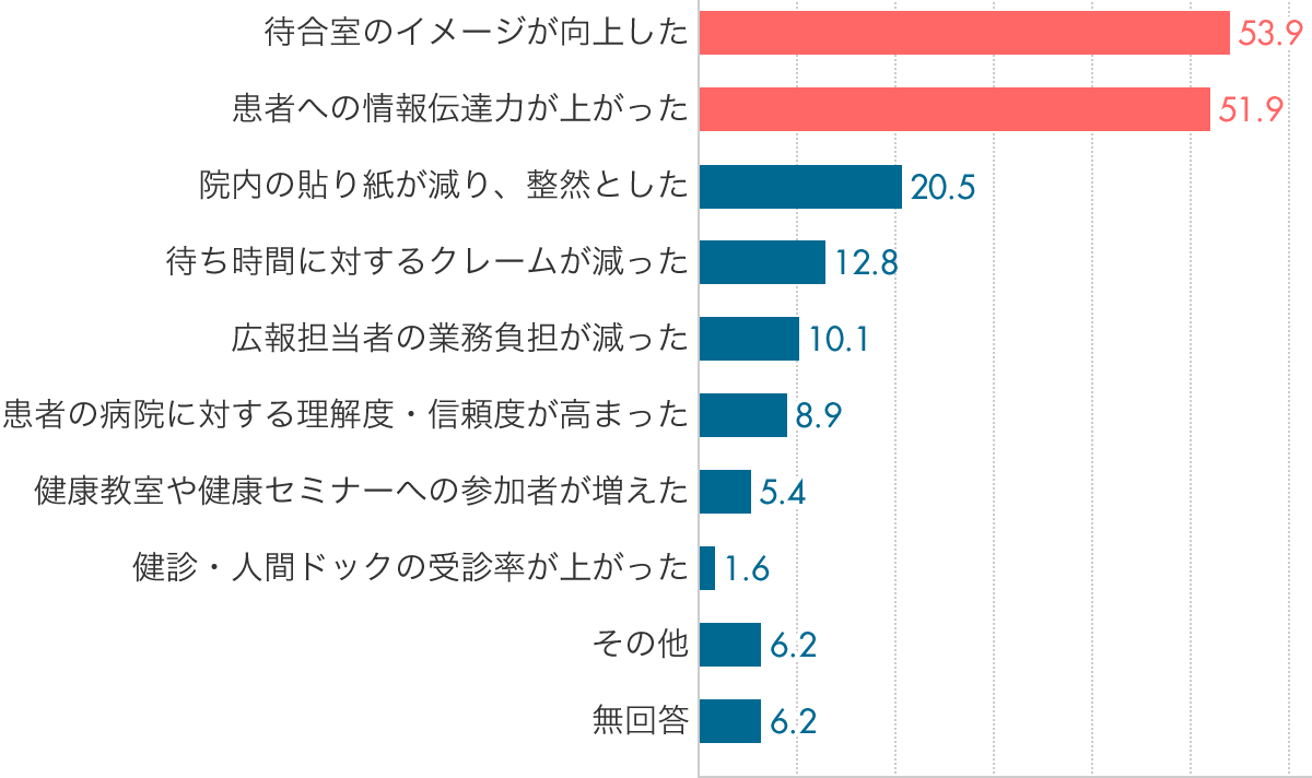 5割以上が「待合室のイメージ」「患者への情報伝達力」がアップしたと回答