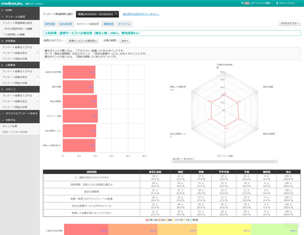 ウェブ上で患者・職員満足度調査の作成から集計までが簡単にできるパッケージ型アンケートシステム。結果を入力すれば、改善点やその優先度がすぐにわかります。定期的に調査を実施することで、改善策の効果測定や新たな対策も可能に。