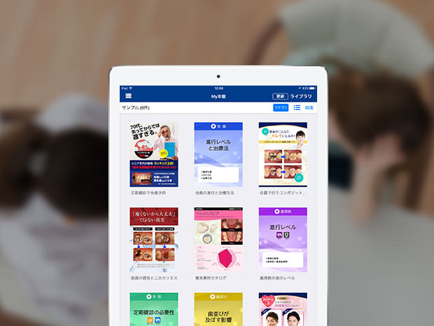 タブレット端末を用いて患者に最適な電子書籍のコンテンツを見せることで、自費治療への"興味・関心"を引き起こします。併せて医師が充分な説明と解決策を提案することで、患者との信頼関係構築をサポートします。